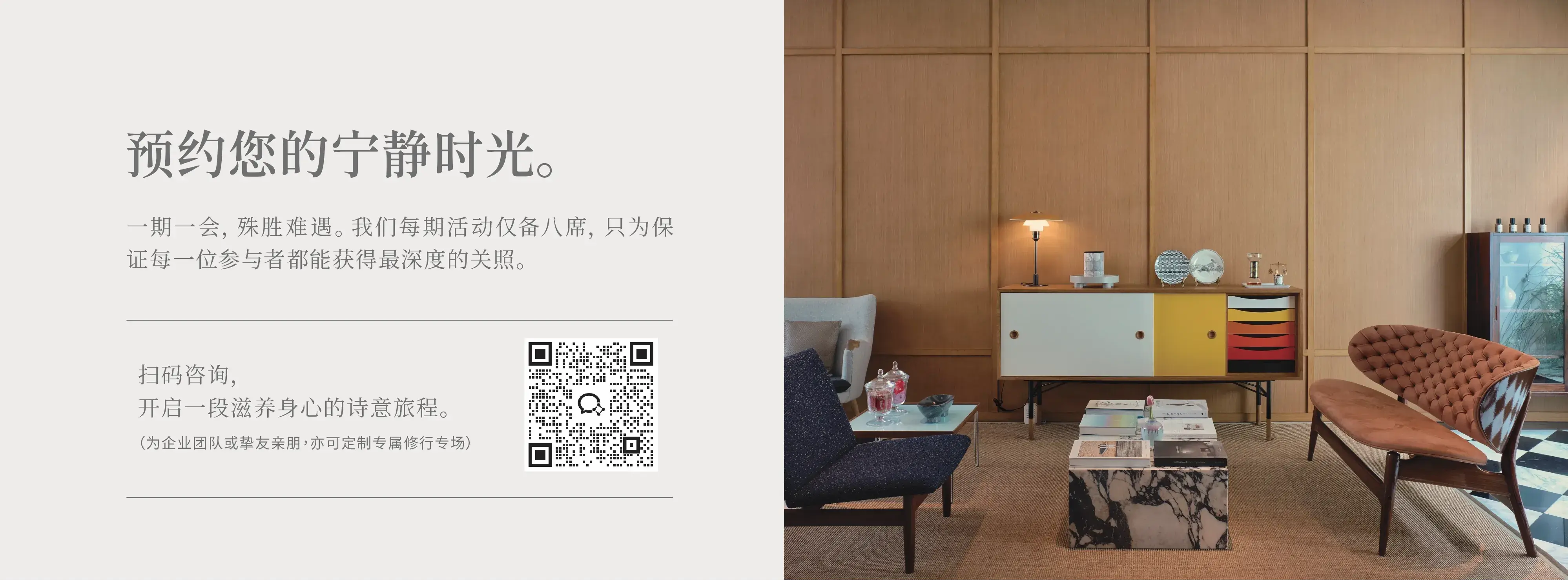 人初文化与杭州 LE HOUSE 携手,于中天竺法净禅寺之侧,辟得一方诗意栖居地。这里不止是身体的休憩所,更是心灵的归栖处。我们融合佛寺的庄严与道法的自然,邀您暂抛俗务,体验一场向内探寻的修行,感受时光沉淀下的静谧力量,重获身心俱足的安宁。